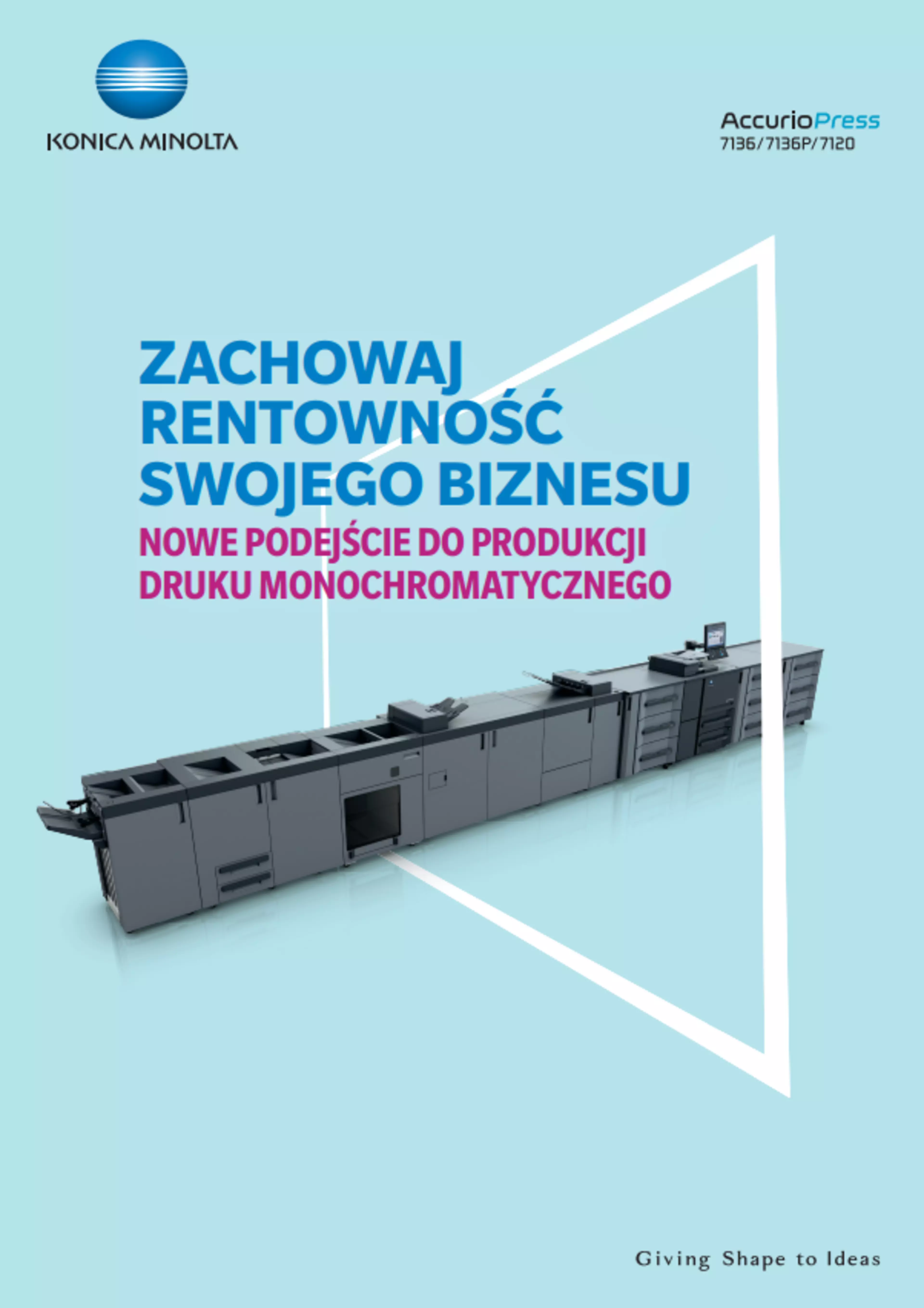 - Zwiększ wydajność operacyjną - Nasza nowa generacja prawdziwych systemów produkcyjnych została zaprojektowana z myślą o wydłużeniu czasu bezawaryjnej pracy prasy i drukarek, co pozwala zaoszczędzić czas. Szereg nowych funkcji umożliwia szybsze wytwarzanie większej liczby produktów o wyższej wartości. A dzięki naszemu inteligentnemu modułowi dbania o jakość zawsze osiągniesz pożądaną jakość druku. Dostosuj swoje kompetencje i zautomatyzuj przepływ pracy, dzięki czemu Twoja linia produkcyjna stanie się kompleksowym rozwiązaniem. Łącząc AccurioPress 7136/7136P/7120 z jednym z naszych profesjonalnych finiszerów liniowych - takich jak tworzenie broszur, dziurkowanie lub bindowanie - można maksymalnie zwiększyć produktywność.